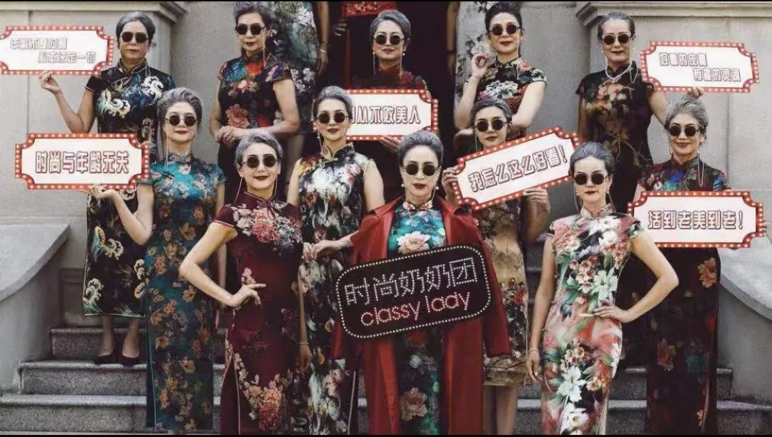 譬如成立于2019年6月的“时尚奶奶团”,由四位穿着旗袍,形象气质佳的奶奶组成,在三里屯身穿蜡染旗袍走秀的15秒短视频突然爆火。