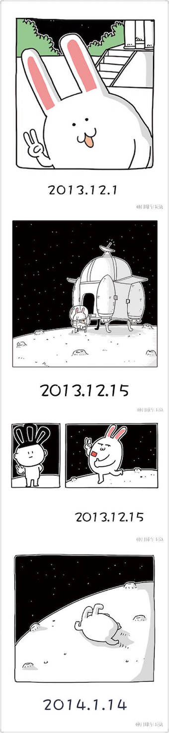 “月球是目的地,地球是家乡。”兔子的微博简介上这样写着。如今,这只世界上看过最多星辰的“兔子”留在了目的地,却无法踏上回程,等着有天被接回家。