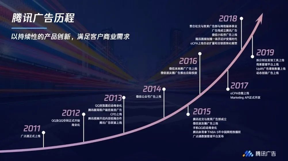 腾讯广告的雏形最早可以追溯至2011年广点通上线。彼时移动端的广告价值逐步取代PC端,成为互联网广告增长的主要引擎。