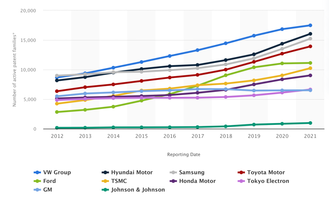 在此可以很明显看到,全球机器人学的最大专利持有者乃是VM,且头部公司主要集中在日本,韩国和美国三个国家,更为重要的是:以上公司都是老牌制造巨头,在数十年的经营中积累了大量的资本,技术以及前瞻性的技术开发,且大都将机器人视为重要发力点。