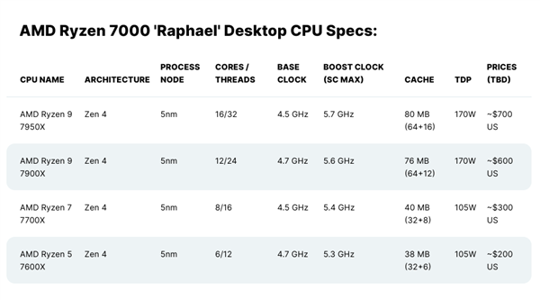 从目前公布的消息来看,锐龙7000系处理器首批产品共四款