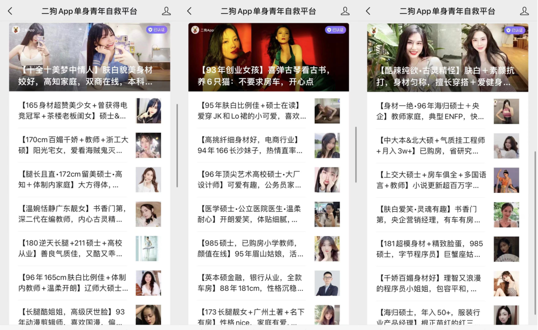 坦诚说,它们本质上没有太多创新,只是依靠学历、工作等信息认证,或是三观问答、匹配要求等资料筛选,增加用户的社交成本。