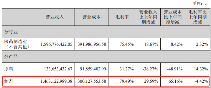 从财务数据来看,今年上半年信立泰制剂类产品营业收入同比增长29.59%,但毛利率同比下滑4.42%至79.49%。