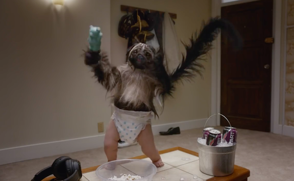 洗脑的广告语可能与荒谬风更配,超级碗上饮料Mtn Dew Kickstar的病毒广告催眠般地让人记住了puppymonkebaby,一只头是狗(puppy)、上身是猴子(monkey)、下身是婴儿(baby)的“可怕”生物到底想为这款饮料贴上什么样的标签?