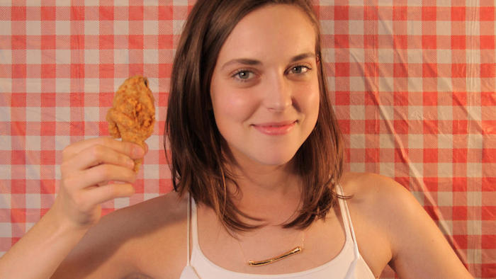 因为肯塔基州最出名产物是肯德基,Hiler就给肯德基炸鸡的骨头镀金,做成项链首饰,该创意曾被不少全国知名媒体的报道。