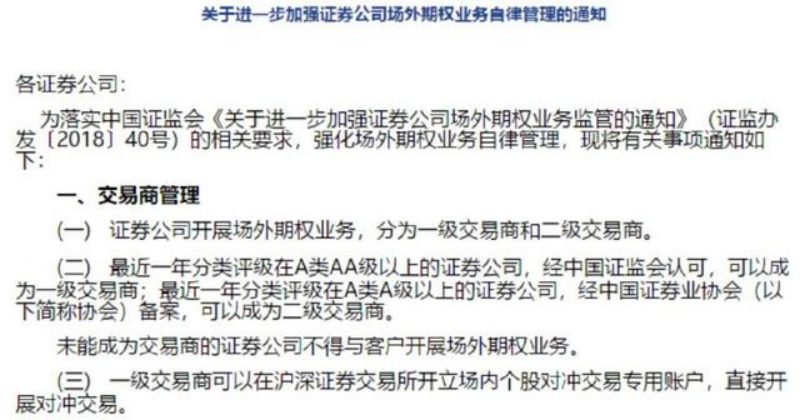 不过,因场外期权业务复杂程度高,自2018年以来,监管层对券商开展该业务的风险也高度重视。