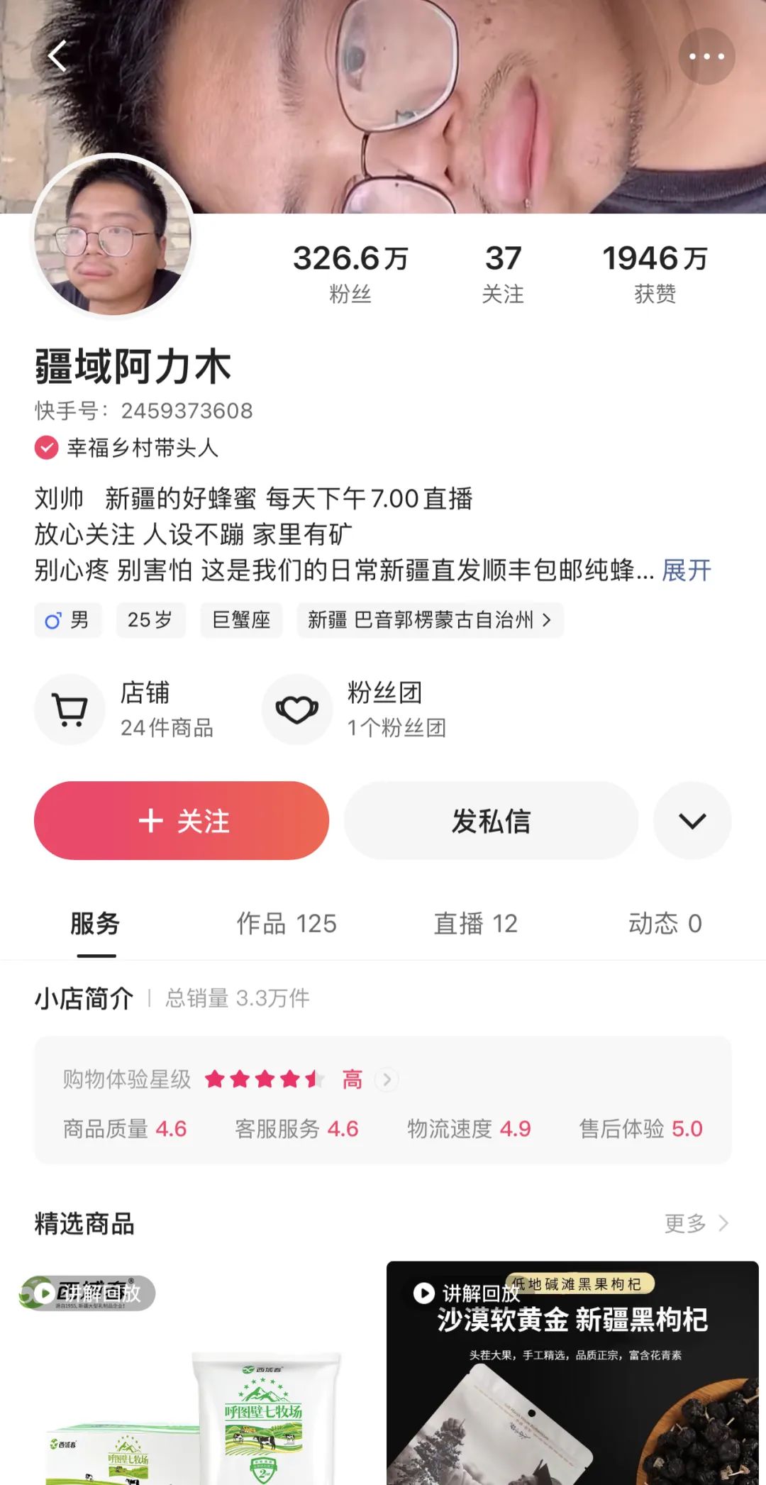 另一边,快手虽在“疆域阿力木”走红伊始便急速上阵,将其吸入“2022幸福乡村带头人计划”,提供平台流量资源、品牌资源和培训资源等全方位支持,但“疆域阿力木”并没有重现“张同学”的增长故事。