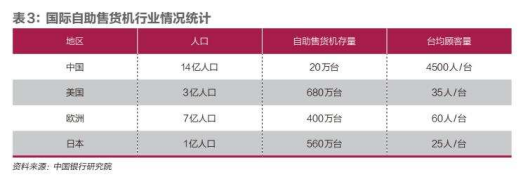 据中国银行研究院的统计,接近20年的发展,到2013年,国内无人零售的市场规模仅仅为19亿元,截止2016年末,我国人均无人售货机的拥有量为4500人/台,而在日本,平均25人就拥有一台自动售货机。