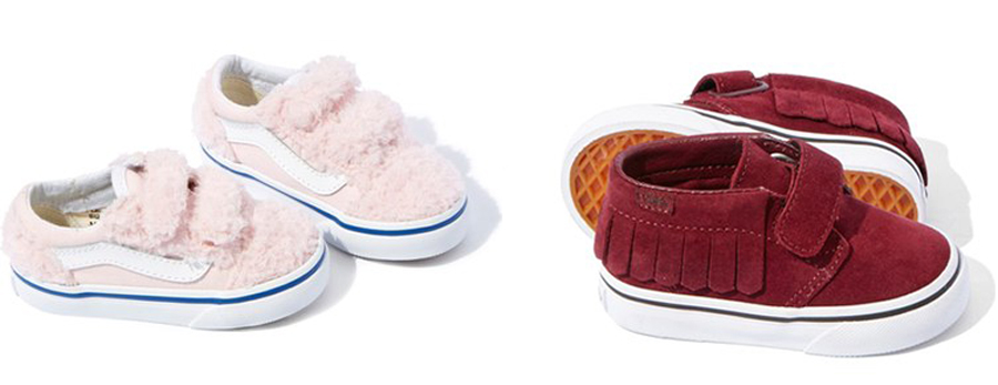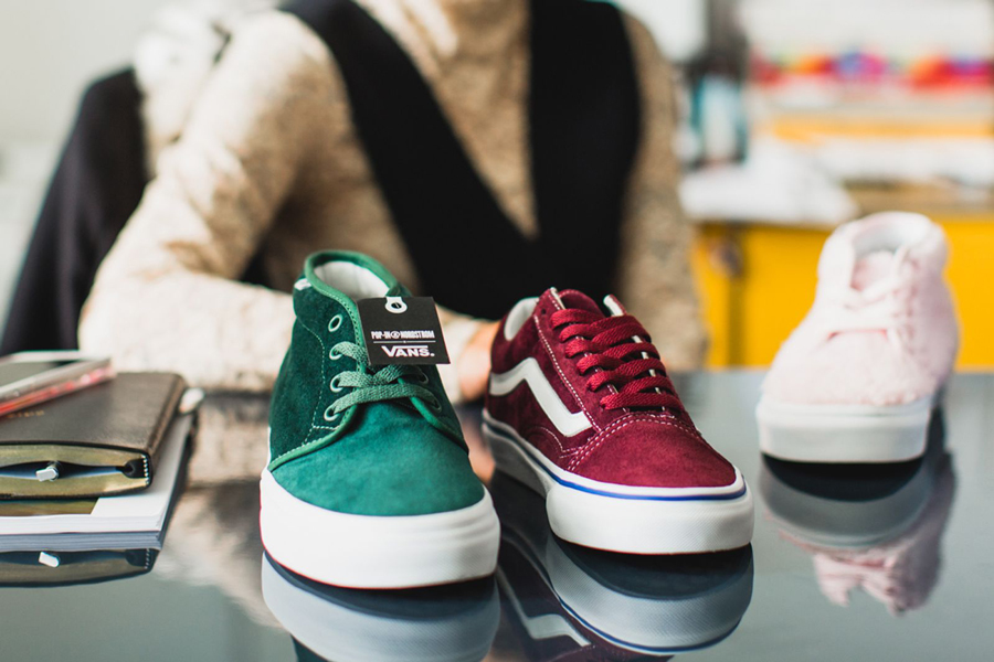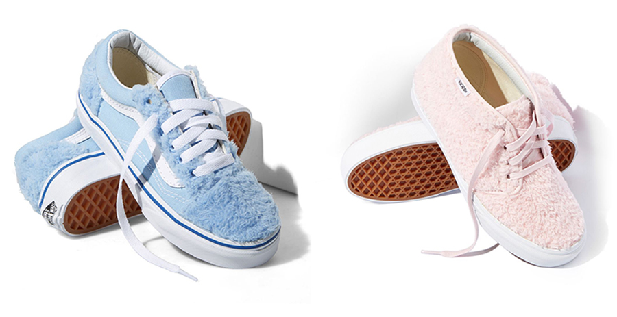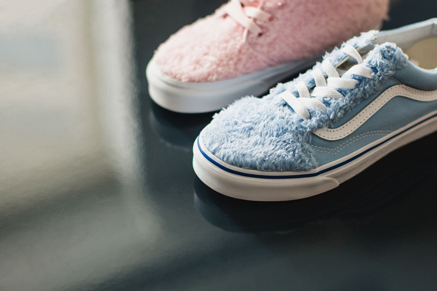 美国百货店Nordstrom 也加入到纪念 Vans 品牌诞生 50 周年的活动之中,双方在 Nordstrom 商场之中设立了一个 Pop-In 店铺,由室内设计师 Olivia Kim 负责设计店铺和合作鞋款。Olivia Kim 选用经典板鞋款式,在鞋身的不同位置加上了毛茸茸的羊毛材质,着色则是以今年的粉、蓝流行色为主。特别的是,Vans X Nordstrom系列还出了儿童款,同比例缩小的鞋子搭配毛茸茸的羊毛,让街头嘻哈风变得温柔可爱了许多。