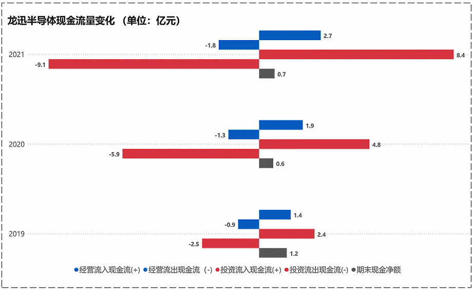 首先是资金压力。现金流量表披露,龙迅半导体在主营业务之外,利用闲置资金购买银行短期理财产品。事与愿违,投资上的连续扩大亏损造成了现金流告急,超出了自身业务的造血能力。