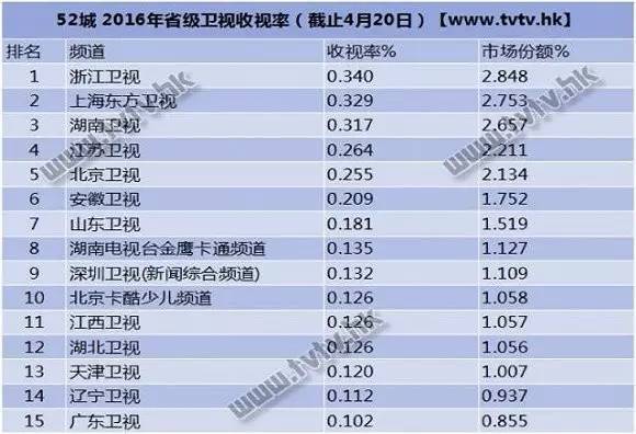 在CSM52城一季度收视率排名中,东方卫视位列第一,浙江卫视次之,而一直以来坐享省级卫视收视冠军的湖南卫视,下滑至第三名。