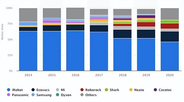 然而,从市占率变化中,我们也可以明显地看到iRobot正在以不可阻挡的趋势被科沃斯、石头科技等新兴势力冲击。