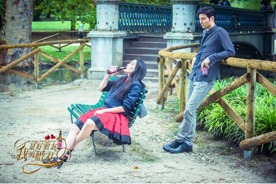 不光是人设不接地气,这部翻拍片的笑点也十分浮夸。在去往婚礼现场的飞机上,顾佳一边大喝香槟,一边痛哭流涕,还要在无意间把香槟泼到身边“型男”的身上。“型男”支持顾佳追回林然,还上演了一段“装gay”的桥段。这个桥段显然是向原版致敬,但看起来实在尴尬感满满。