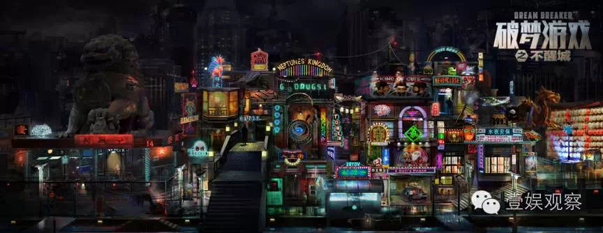 《破梦游戏之不醒城》的故事大量设定在虚拟的游戏场景内,不可避免地需要通过数字特效去构建——但钟丽芳并没有向壹娱观察(微信ID:yiyuguancha)过分强调本片特效的过人之处,相反在探班的过程中,我们看到的大多是设计和制作精细的实景,特别是在重庆郊外建造的“黑市”(电影内的场景)。钟丽芳对这些由美术完成的实景特别自豪,还给壹娱观察看了一些实拍剧照,人物造型和室内布景、道具都与游戏的设定吻合,而且从剧照的效果看就像是大型主机游戏的CG引擎渲染出的未来世界。