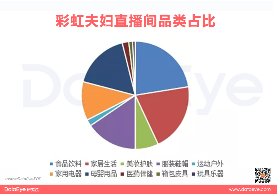 彩虹夫妇在选品上,往往涵盖宝妈在生活各方面的消费需求,其直播间一半以上的品类是日用百货和食品饮料,价格控制在百元以内,主打低客单价、高性价比。