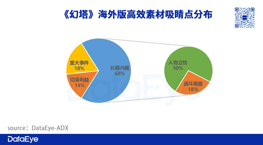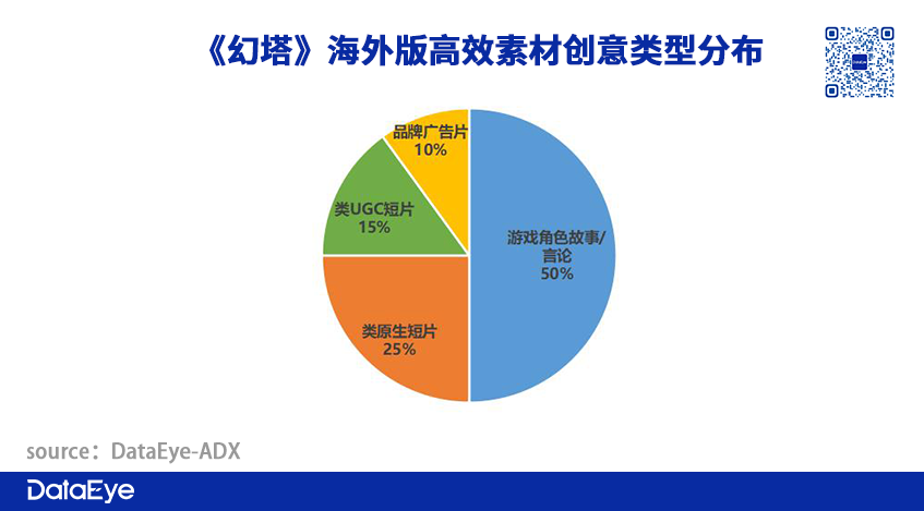在创意形式方面,《幻塔》作为二次元题材产品,侧重对游戏人物进行描写,突出角色故事/造型等等,占比约为50%。这类型的创意形式可以很好地展现游戏人物,尝试与二次元玩家形成关联,但广告性质一般,主要依靠品质去打动用户,使得整体转化链路更长,并且不可控。