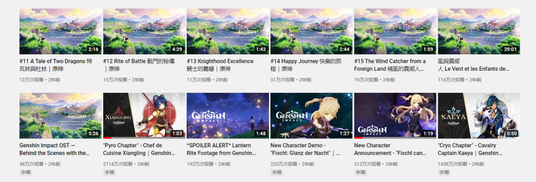对比来看,《原神》在产品上线前夕更注重对二次元玩家的触及,在内容表现上侧重对故事背景以及游戏角色,从而形成系列内容。而在数据表现上,《原神》上线前项目组发布超过40条官方视频,而平均播放量超过350万次。