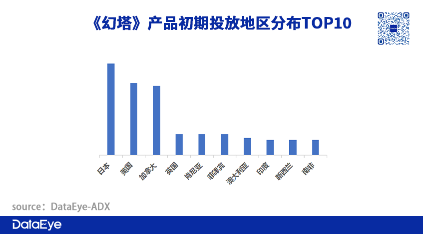 根据投放地区数据显示,《幻塔》项目组目的性较强,侧重对全球市场较大的美国以及日本进行切入,其希望快速切入市场,引起地区用户的关注,符合腾讯相对“高端”的发行思维。