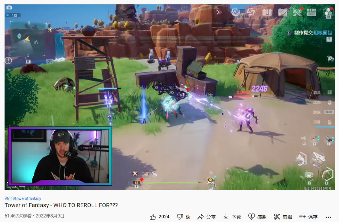 根据Tower of Fantasy官方YouTube频道的内容显示,相关官方视频内容更聚焦于游戏本身,包括展现游戏玩法、游戏内的捏脸系统以及外国玩家游戏试玩等等。可以认为,项目组希望目标用户对游戏内容产生兴趣,更侧重对游戏本身的展示,降低了二次元题材用户的关注点。