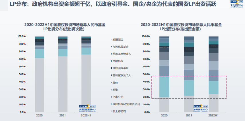 我们先来看一组数据——清科创业(1945.HK)旗下研究中心统计,从2022年上半年新募人民币基金的LP国资属性来看,以国企/央企、政府引导基金为代表的国资LP日渐成为人民币基金的重要募资方,上半年国资LP披露的出资金额超千亿元,占比已超70%。国资,已经成为人民币募资市场一个不可绕过的群体。