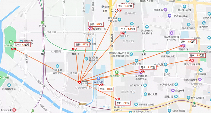 前海时代周边有华润前海中心、前海卓越金融中心,也有阳光棕榈园、前海花园等小区。根据周边宗地性质,未来片区将以商业(办公)、居住功能为主。