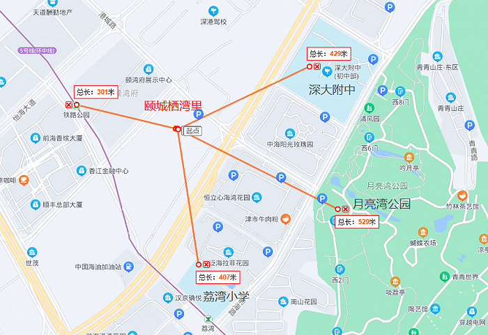 周边有深外附中初中部、荔湾小学、月亮湾公园等配套,商业配套有待周边的住宅小区和办公物业补充。