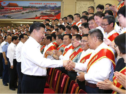 2016年7月29日,全国双拥模范城(县)命名暨双拥模范单位和个人表彰大会在北京举行。习近平亲切会见与会代表,向全体支持和参与双拥工作的同志表示诚挚的慰问,向获得表彰的单位和个人表示热烈祝贺,并抒发“军民团结如一人,试看天下谁能敌”的豪情壮志。