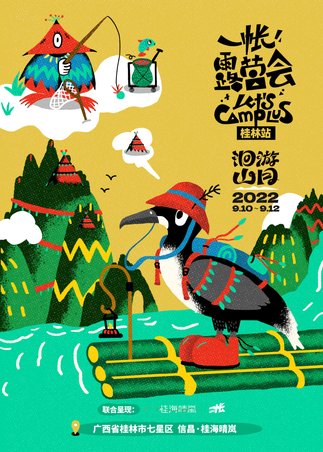 今年首场「洄游山月·一帐露营会」将于中秋佳节之际如期而至,在草木繁盛,山石屹立的桂海晴岚撑起一帐之地。