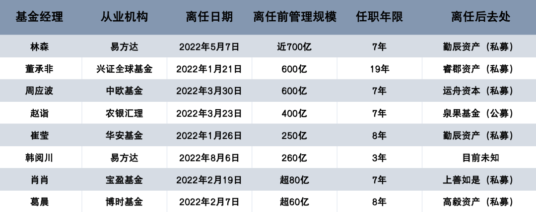 在2022年离任的知名基金经理中,不少人的下一站选择就是私募基金。