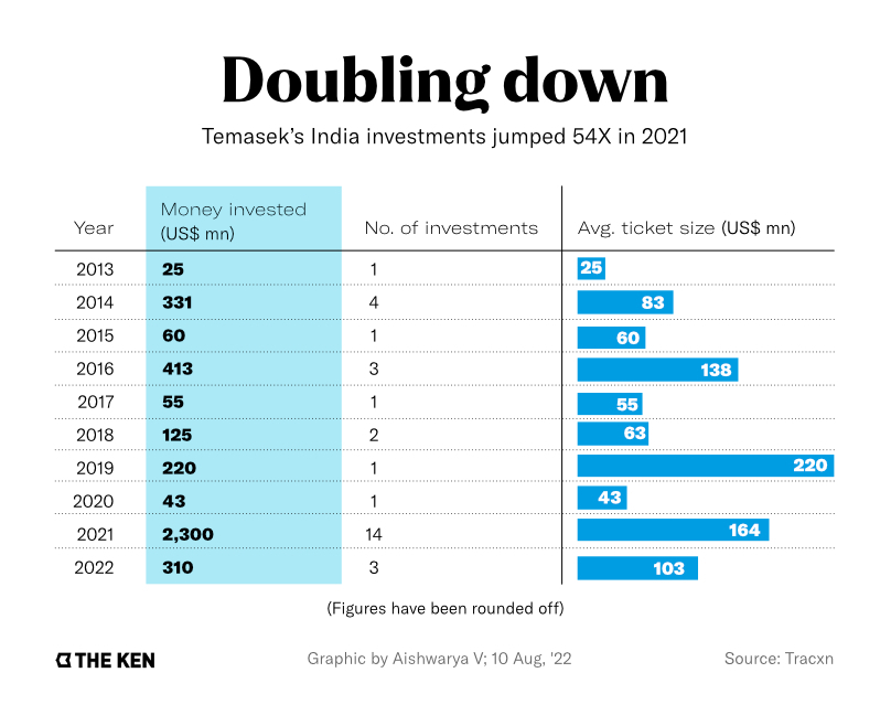 然后在2021年10月,淡马锡领投Open的1亿美元C轮融资,据报道,该银行平台的估值为5亿美元。该年底,淡马锡又将Ola Electric纳入其投资组合,向这家电动滑板车制造商投资了2500万美元。这不是淡马锡对Ola Electric领导层的首次投资,此前,淡马锡还投资过巴维什 阿加沃尔领导的叫车公司Ola Cabs。
