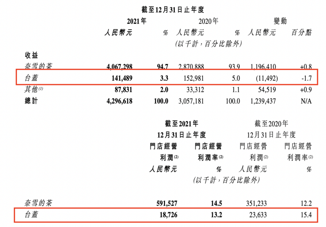 “台盖”虽然在其整体营收结构占比并不重,但是作为2018年就已经孵化且独立运营的品牌,主要作用就是为了与奈雪的茶区分开来,未来与蜜雪冰城等正面竞争抢地盘。如果自家产品也降价加入中低位竞争,那么“台盖”的地位就会有些尴尬。考虑到行竞争加剧,不排除茶饮品牌为了抢市场进一步降价的可能。那么“台盖”未来或许就会像鸡肋一样“食之无味弃之可惜”。