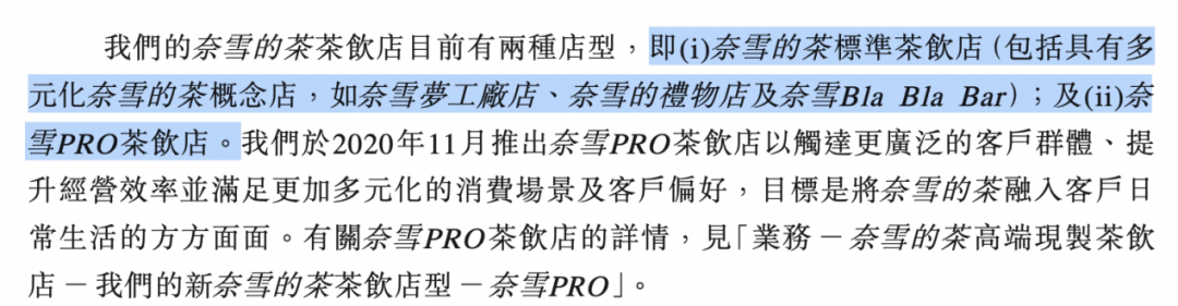 根据其招股书资料显示,其目前在经营的门店类型主要有奈雪的茶标准茶饮店、奈雪的茶PRO茶饮店两种类型。