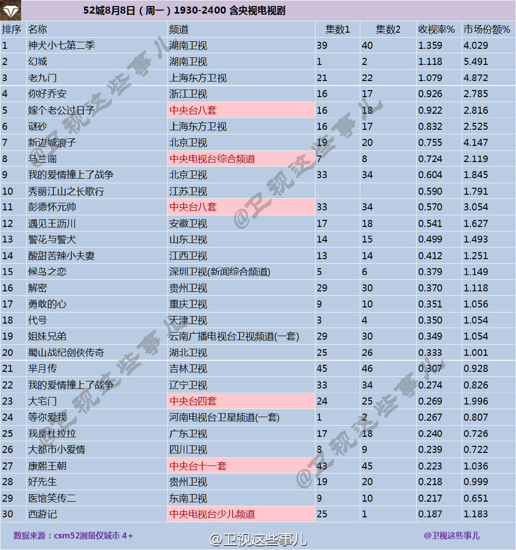 卫视收视率统计: