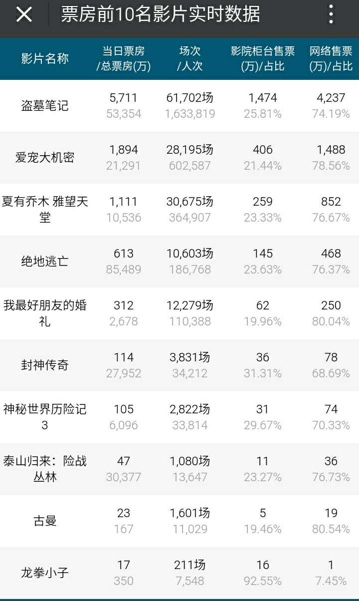 票房数据统计: