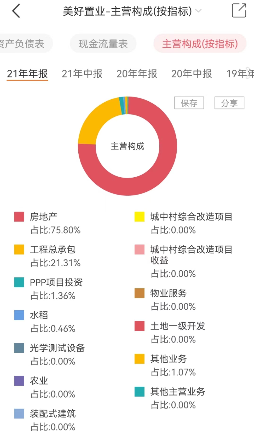 虽然涉足装配式建筑涉多年,但美好置业在2021年年报中才首次披露该业务的营收情况。2021年,装配式建筑实现营收7.59亿元,同比增长21.71%。同期,该业务对总营收的贡献比为21.31%,同比增长6.49%。