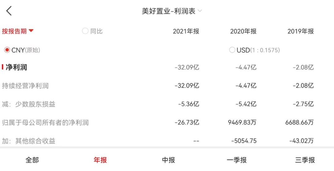 2021年,美好置业实现总营收35.6亿元,同比下降15.37%;净利润-32.09亿元,同比下滑617%。