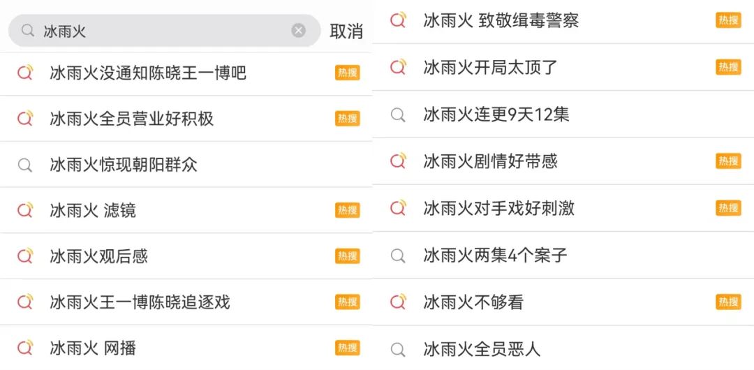 首日开播后不久,#王一博 陈宇#、#陈宇洗澡是我能免费看的吗#等演员相关话题就上了热搜,还玩起了#冰雨火开播没通知陈晓王一博吧#的梗。