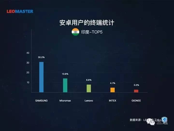 从全球角度看,手机安全软件安装最多的国家中,除美国外,多为人口基数大的发展中国家。这些国家的手机用户大多使用安卓Android手机,由于安卓系统的开源性,使得用户对隐私防护更加注重。其中,印度是全球安装防护软件最多的国家(LEOMASTER排名)。