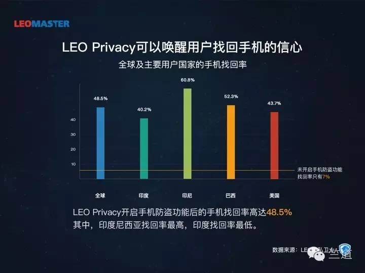在开启手机找回功能后,全球平均手机找回率为48.5,而印度找回率最低,仅为40.2%。