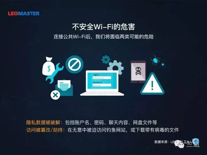 一些不法分子利用公共Wi-Fi的漏洞,不仅能破解出我们的账户名、密码、聊天内容等隐私数据,还能让用户被迫访问钓鱼网站,骗取个人信息,造成财产损失等,类似情形案件在近两年频频发生。