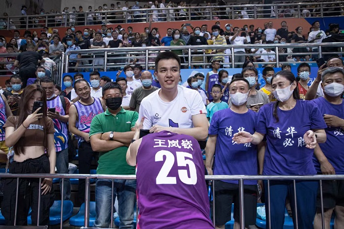 但是,2022年盛夏的重庆,决赛三分险胜,王岚嵚扑向看台观赛的曾茂洲,是清华男篮的传承,更是对学长的交代。