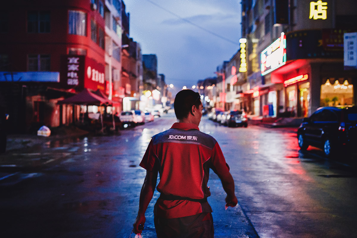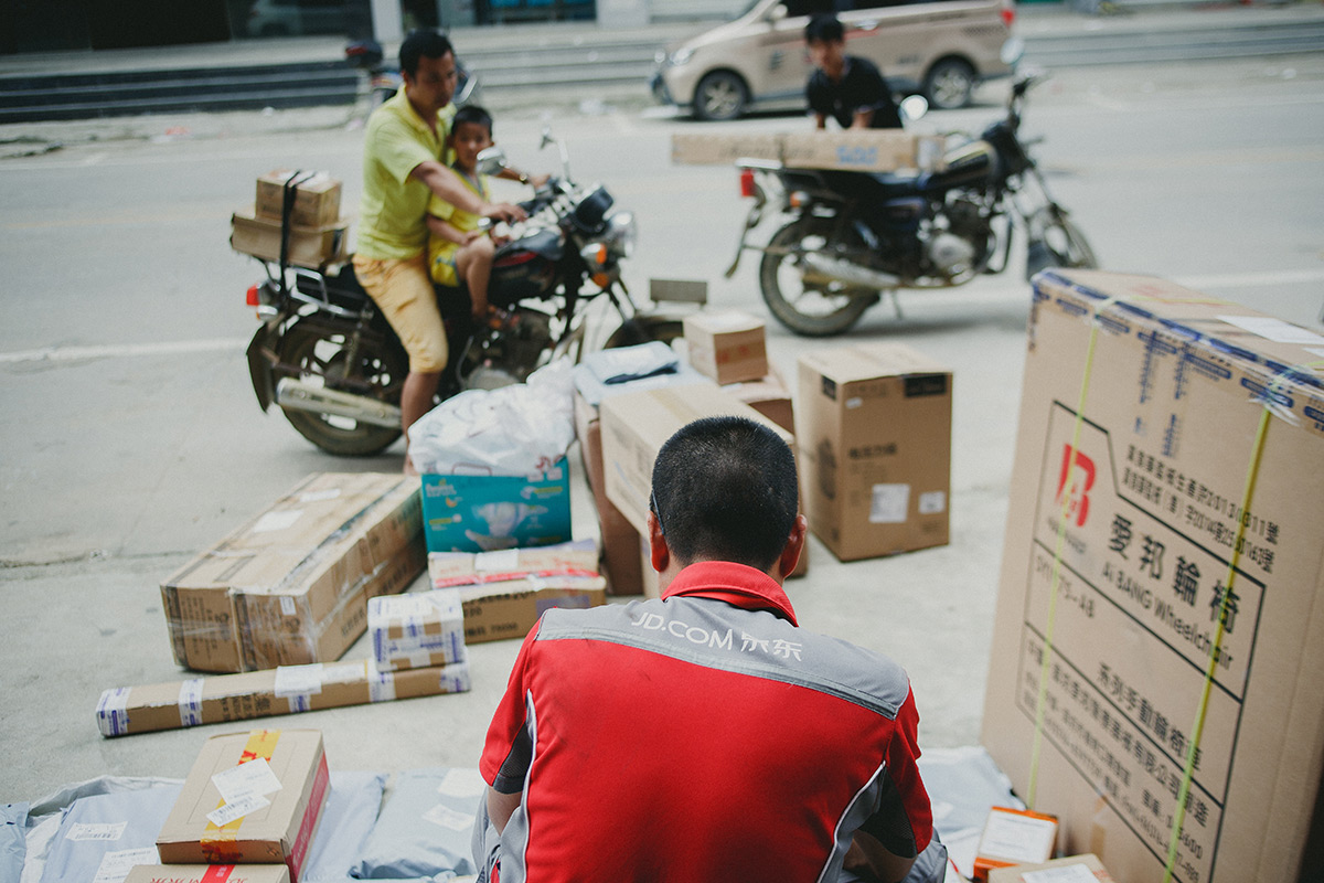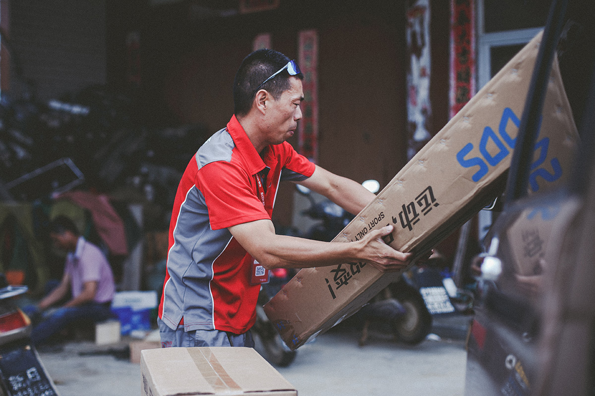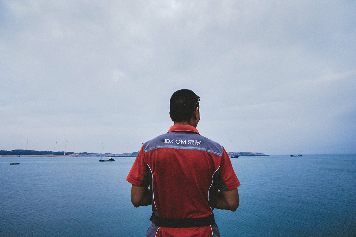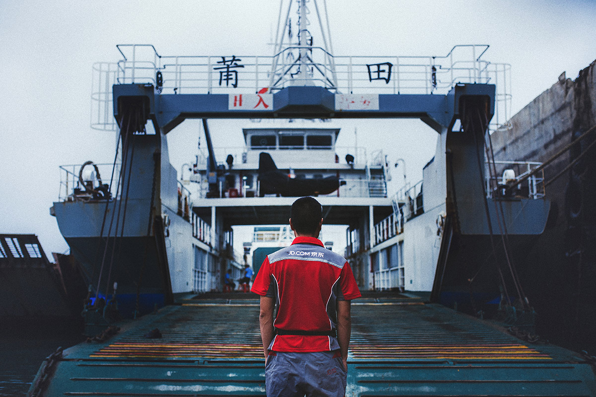 石瑞鸿36岁,面庞黝黑,是福建莆田市的一名京东配送员,负责配送莆田市辖区内南日岛、湄洲岛两个海岛的货物。我们都叫他石师傅。他每天要通无数个电话,说话时口气很轻,语速很快,一个句子总是要重复好几遍:“美女,你的货到了,你的货到了,哈”,“还是老地方,还是老地方,哈”,“我理好了货给你发短信,给你发短信,哈”。句尾的“哈”语调上扬,类似于“好吗”,是一声客气。