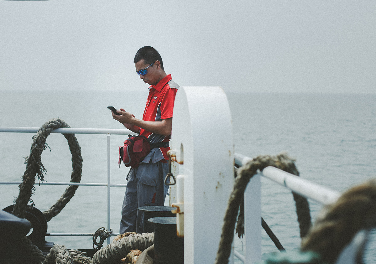 在回程的轮渡上,石师傅终于有空闲和心情,像游客一样,看看海上的风景。这道航程他看了无数遍,再熟悉不过了,即使趴在船舱窗口迎风望着海面,他脑子里转的也还是家事和孩子。
