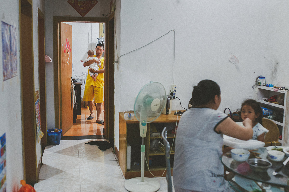 晚饭是一家人团聚的时刻。石师傅家的晚饭,往往需要两三个小时。小女儿太小,刚学会咀嚼,哭一哭,停下嚼两下,再哭哭。大女儿很好动,精力无限,扭来扭去东摸西看,吃两口吐一口。两个孩子没一个省心的,只能挨个喂。喂饱了小女儿,石师傅抱着她在家里遛弯消食,妻子开始专心对付大女儿。