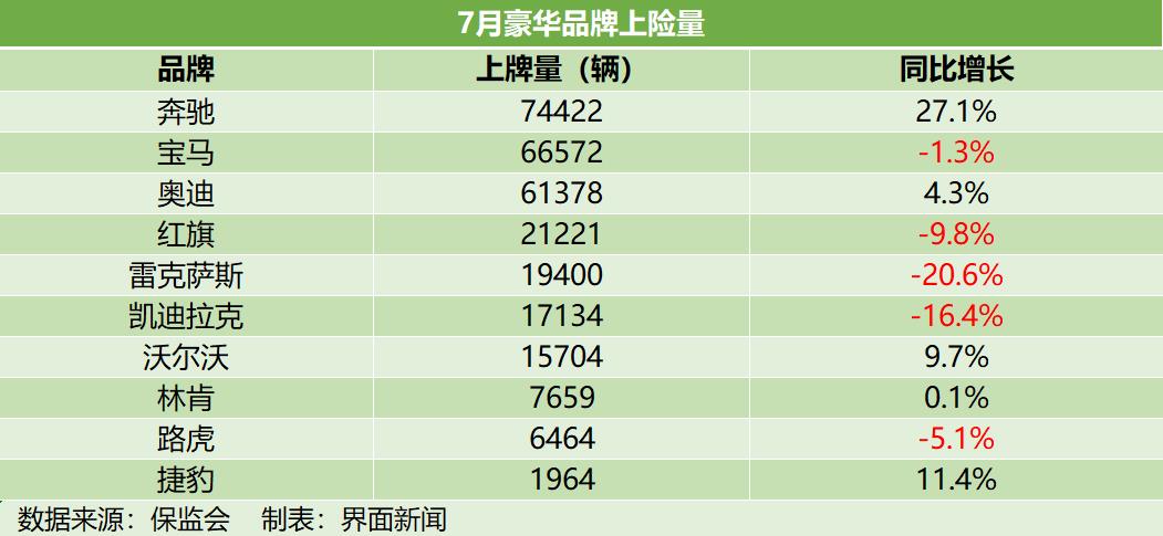 近日,七月新车交强险上险量数据出炉。