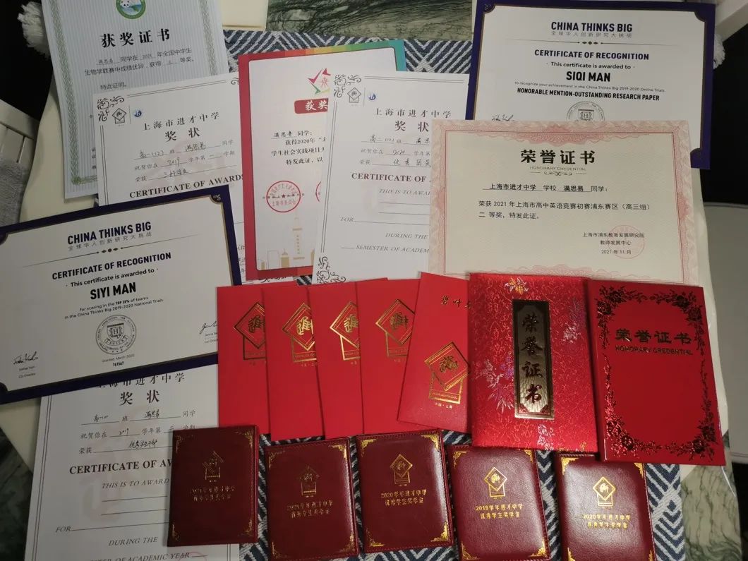 满思奇、满思易姐妹高中所获荣誉。8月1日,两人先后参加复旦大学综评线上面试,妹妹满思易认为经历过目前为止最重要的一次面试,自己收获了长足的进步。