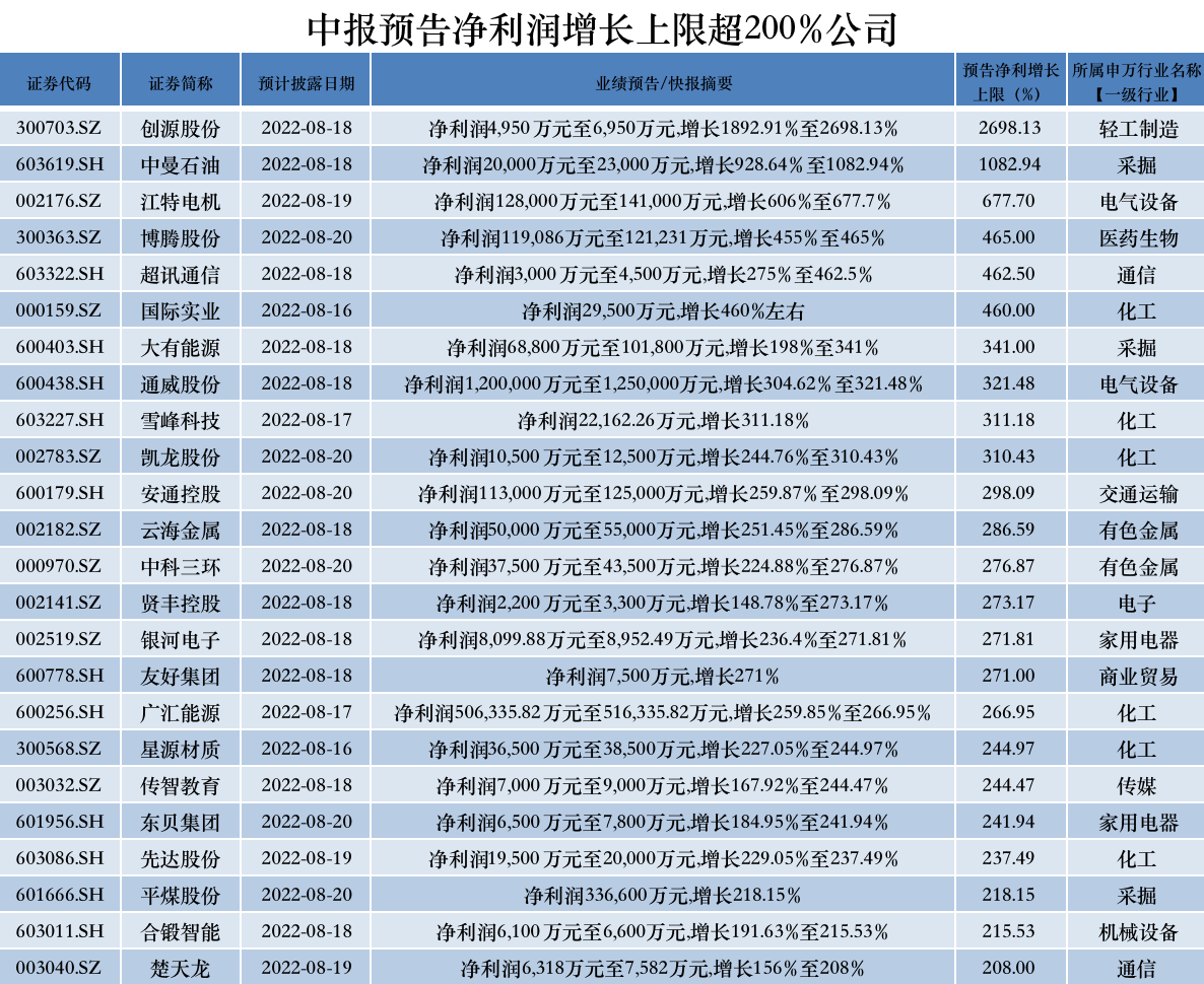 部分公司业绩大涨与行业景气度相关,如中曼石油(603619.SH)、江特电机(002176.SZ)、大有能源(600403.SH)等。