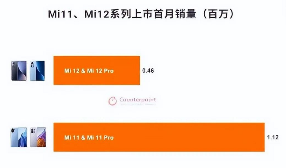 小米12系列首月销量仅46万台,较小米11系列首月下降了60%。