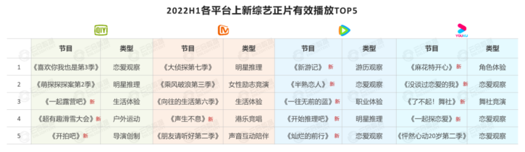 据不完全统计,2021年全年播出的恋综节目多达28档;今年上半年,情感类综艺数量占比位列前五名,有效播放占比也达到12%,排在所有综艺类型的第三位,《半熟恋人》和《灿烂的前行》还跻身榜单前二十。