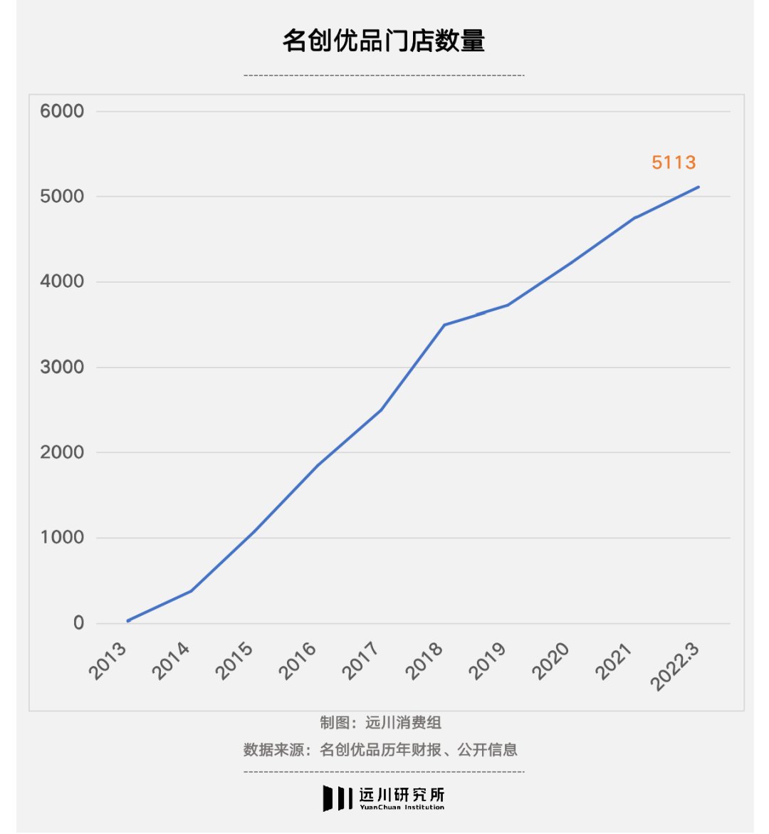因此,2013年只有27家门店的名创优品五年后开到了3500家门店,翻了130倍,平均每年开店700家[2]。2022年,这一数字增长至5000多家,名创优品用9年的时间就完成了前辈大创百货用46年才完成的事情。